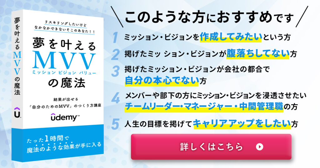 Udemy「夢を叶えるミッション・ビジョン・バリューの魔法」