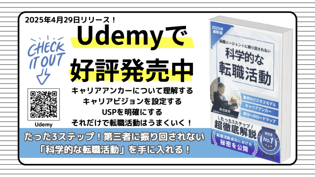 Udemy「たった3ステップ転職エージェントに振り回されない『科学的な転職活動』を手に入れる
